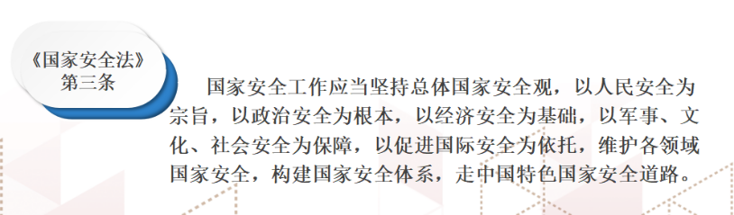 国家安全是指国家政权、主权、统一和领土完整、人民福祉、经济社会可持续发展和国家其他重大利益相对处于没有危险和不受内外威胁的状态,以及保障持续安全状态的能力。